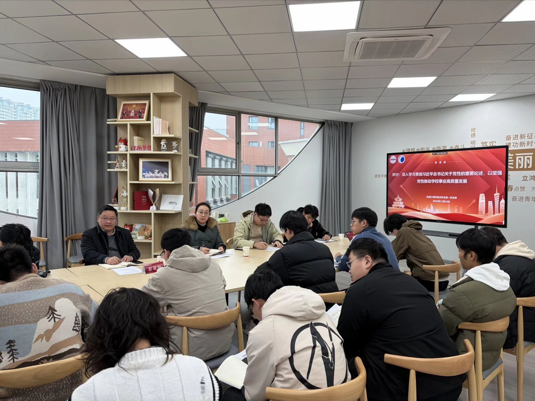 活动开始,全体党员在支部副书记郑腮佳同学带领下,集中学习习近平总书记重要文章《推进党的自我革命要做到“五个进一步到位”》。通过原文学习、要点解读,党员们深刻领会党的自我革命的重大意义和实践要求,进一步坚定了以党性立身、以实干建功的信念。随后,支部书记尹佳婧老师以支部特色活动“讲史堂”为案例,分享支部建设成效,在党史学习中寻根铸魂,生动诠释了党史学习教育的实践价值。支部党员谭盛方同学以“三牛精神”为主题,开展中国共产党人精神谱系微党课示范分享,从孺子牛、拓荒牛、老黄牛精神中汲取奋进力量,引发全体党员强烈共鸣。在学生党员交流研讨环节,大家围绕“深入学习贯彻习近平总书记关于党性重要论述,以坚强党性推动学校事业高质量发展”主题,结合自身学习科研与思想实际,交流心得体会,探讨实践路径,现场氛围热烈浓厚。